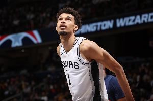 上赛季文班因深静脉血栓报销前出战了46场常规赛,场均24.3分11篮板3.7助攻1.1抢断3.8盖帽。