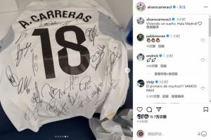 今夏加盟皇马的A费此役踢满全场,帮助球队取胜,他在社交媒体上晒出首秀球衣,上面签满了队友的名字。